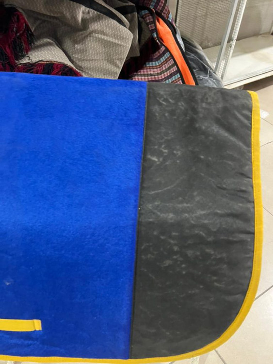 عرقگیر ایرانی آبی مشکی مخصوص اسب طراحی شده تا بهخوبی زیر زینهای استاندارد اسب (پرش، درساژ، همهمنظوره) قرار بگیرد و بدون جمعشدن یا لغزش، از پشت اسب محافظت کند.