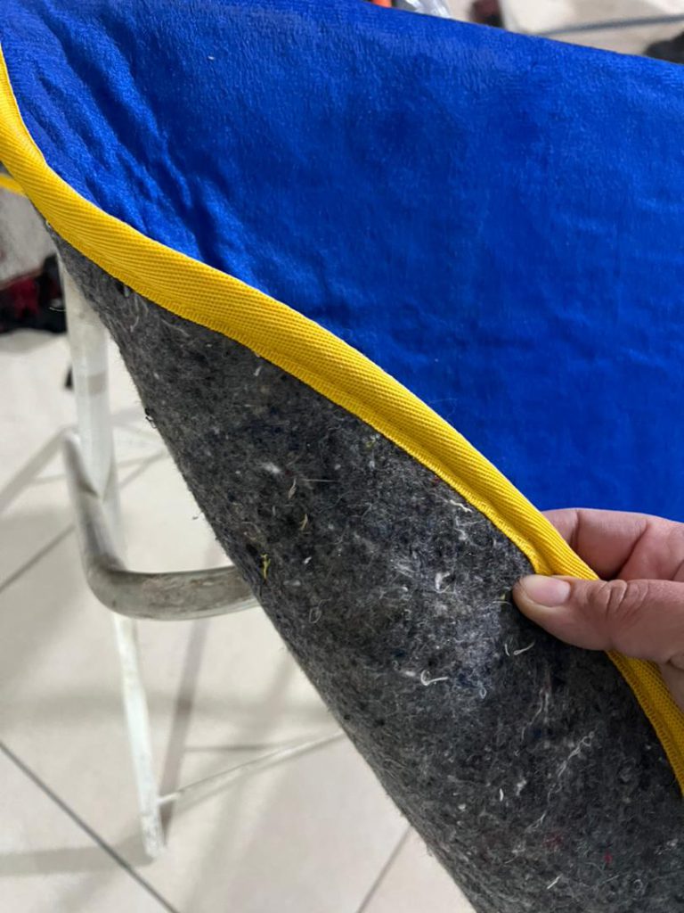 عرقگیر ایرانی آبی مشکی مخصوص اسب طراحی شده تا بهخوبی زیر زینهای استاندارد اسب (پرش، درساژ، همهمنظوره) قرار بگیرد و بدون جمعشدن یا لغزش، از پشت اسب محافظت کند.