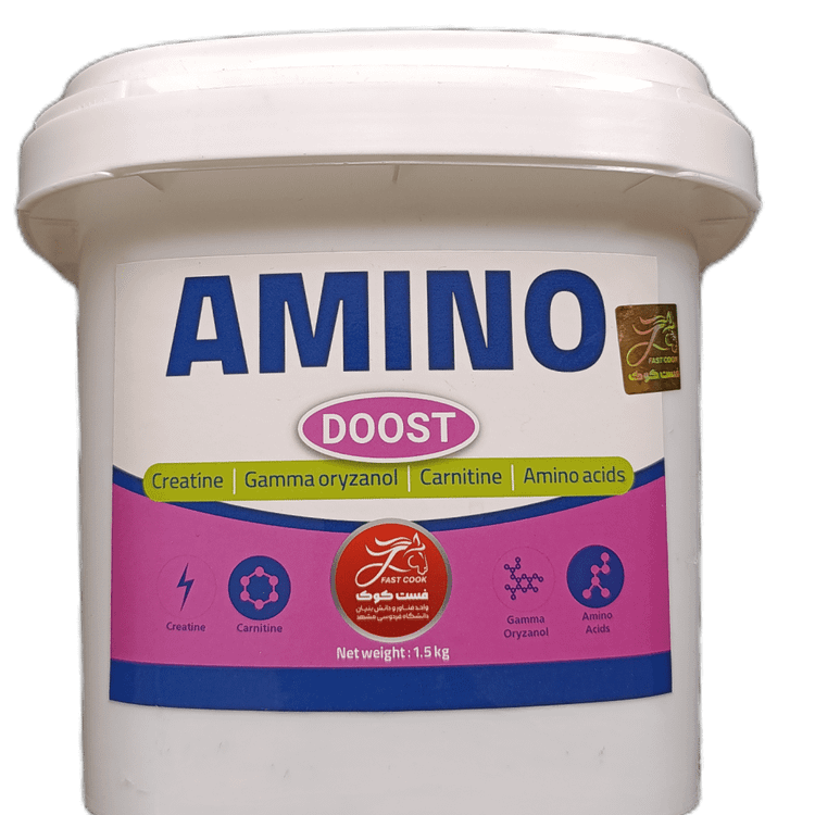مکمل تخصصی عضلهساز اسب آمینودوست (Aminodoost) با ترکیب بهینه اسیدهای آمینه ضروری، افزایش تولید پروتئین عضلانی، بهبود قدرت، حجم و تراکم عضلات اسبهای ورزشی و تمرینی. وزن ۱.۵ کیلوگرم با ارسال رایگان.